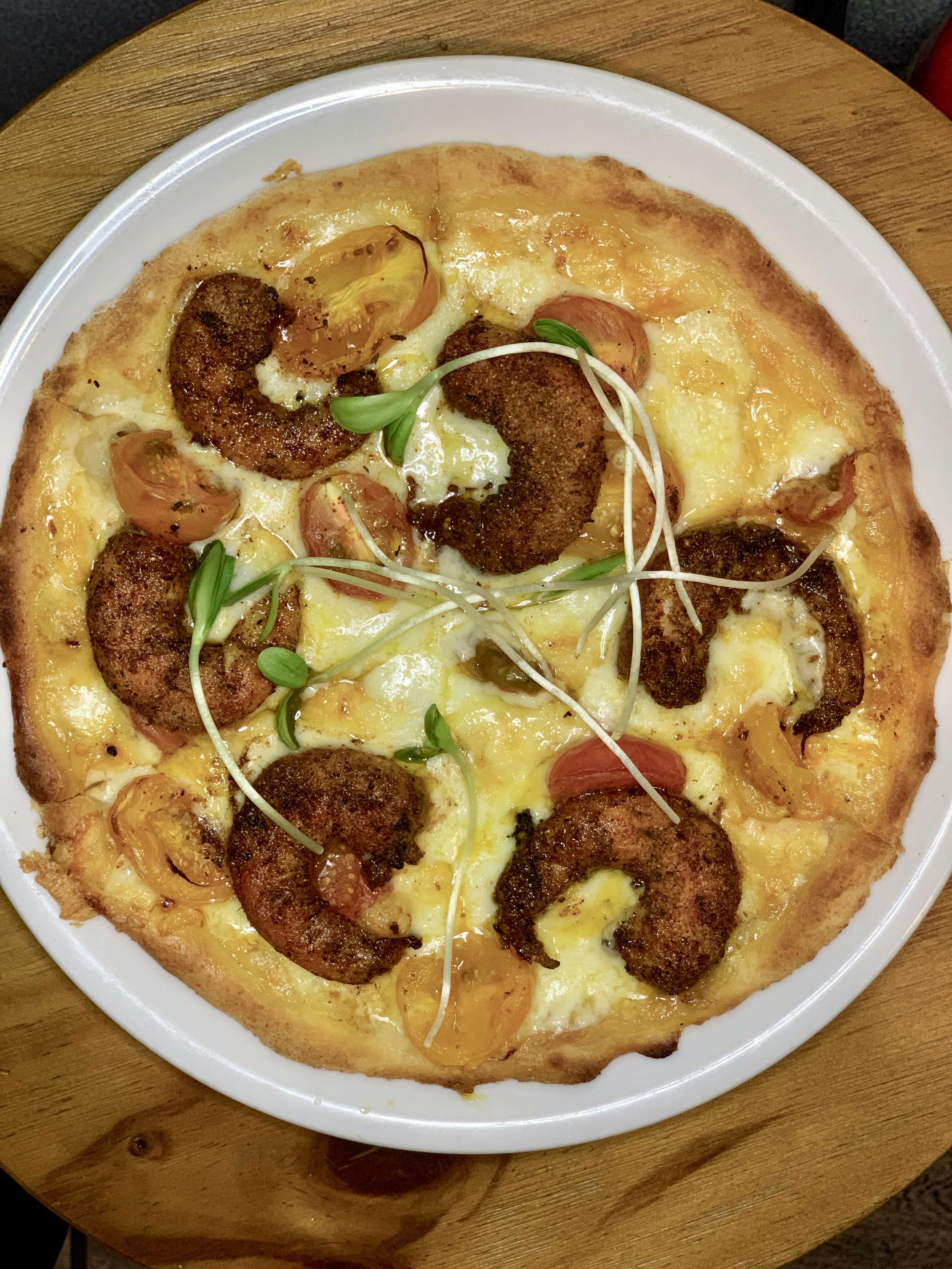 Kashkaval cheese, tomato, spices, micro greens