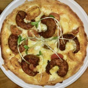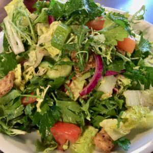 Two eggs your style, tomato, spinach, on pita, spiced potatoes